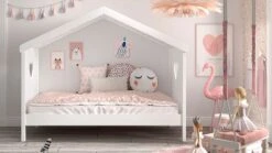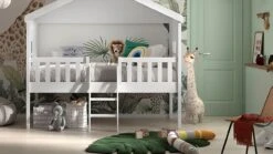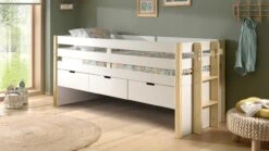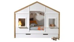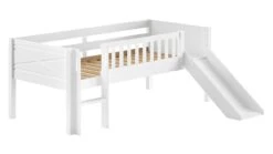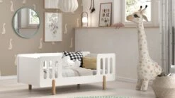 Peuterbed Smile Wit met Natuurhouten Poten – Scandinavisch Kinderbed met Uitvalbeveiliging