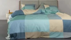 Beddinghouse Eliott Blauw & Zand β Handgeschilderd Ruitpatroon β 100% Katoen Dekbedovertrek