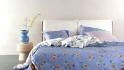 Kardol by Beddinghouse Saffron Dekbedovertrek – Katoensatijn – Zachtblauw & Zand Floraas Dessin