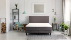 Boxspring Boston Antraciet – Luxe Vlakke Boxspring met Gestoffeerd Pocketvering Matras & Topper