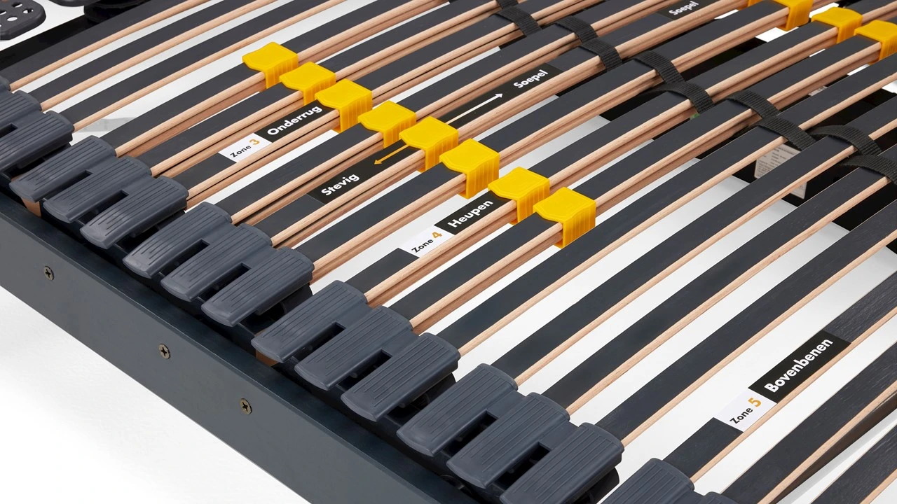 - Optimale Ondersteuning: 33 tot 39 latten (afhankelijk van lengtemaat) voor perfecte aansluiting bij pocketveermatrassen