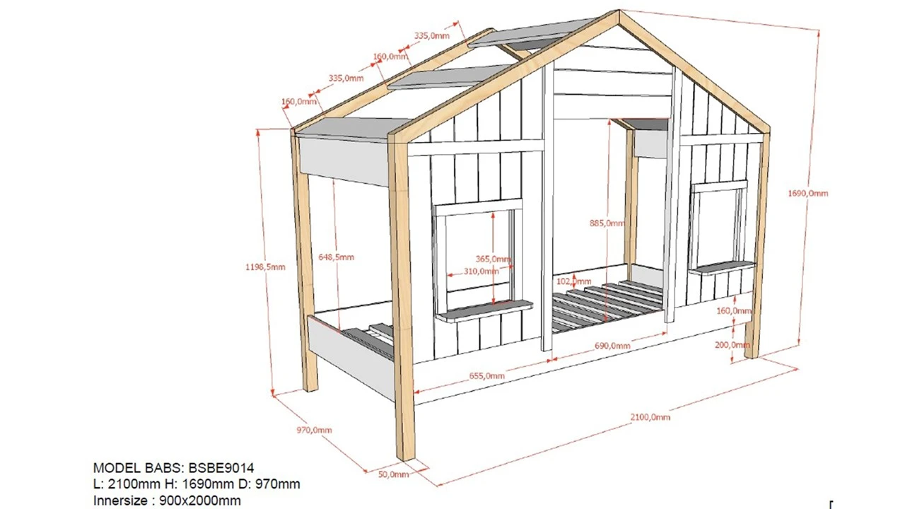 Huisbed Babs is de perfecte combinatie van een knusse slaapplek en een speelse omgeving. Dit bed nodigt uit tot dromen en biedt tegelijkertijd een praktische oplossing voor de moderne kinderkamer. Dankzij het unieke ontwerp met een echt dakframe en charmante details, wordt naar bed gaan een feestje.