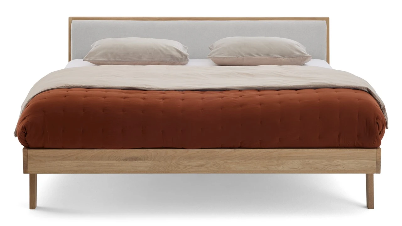 Breng natuurlijke kalmte en warmte in je slaapkamer met het KΓ₯rlsson bed Skogar. Dit bed biedt het volmaakte evenwicht voor een druk bestaan, waarbij het robuuste karakter van massief eiken perfect samensmelt met de zachtheid van een gestoffeerd hoofdbord.