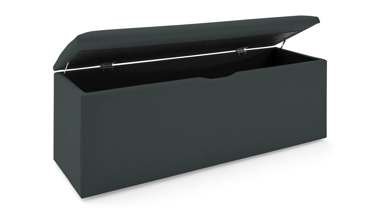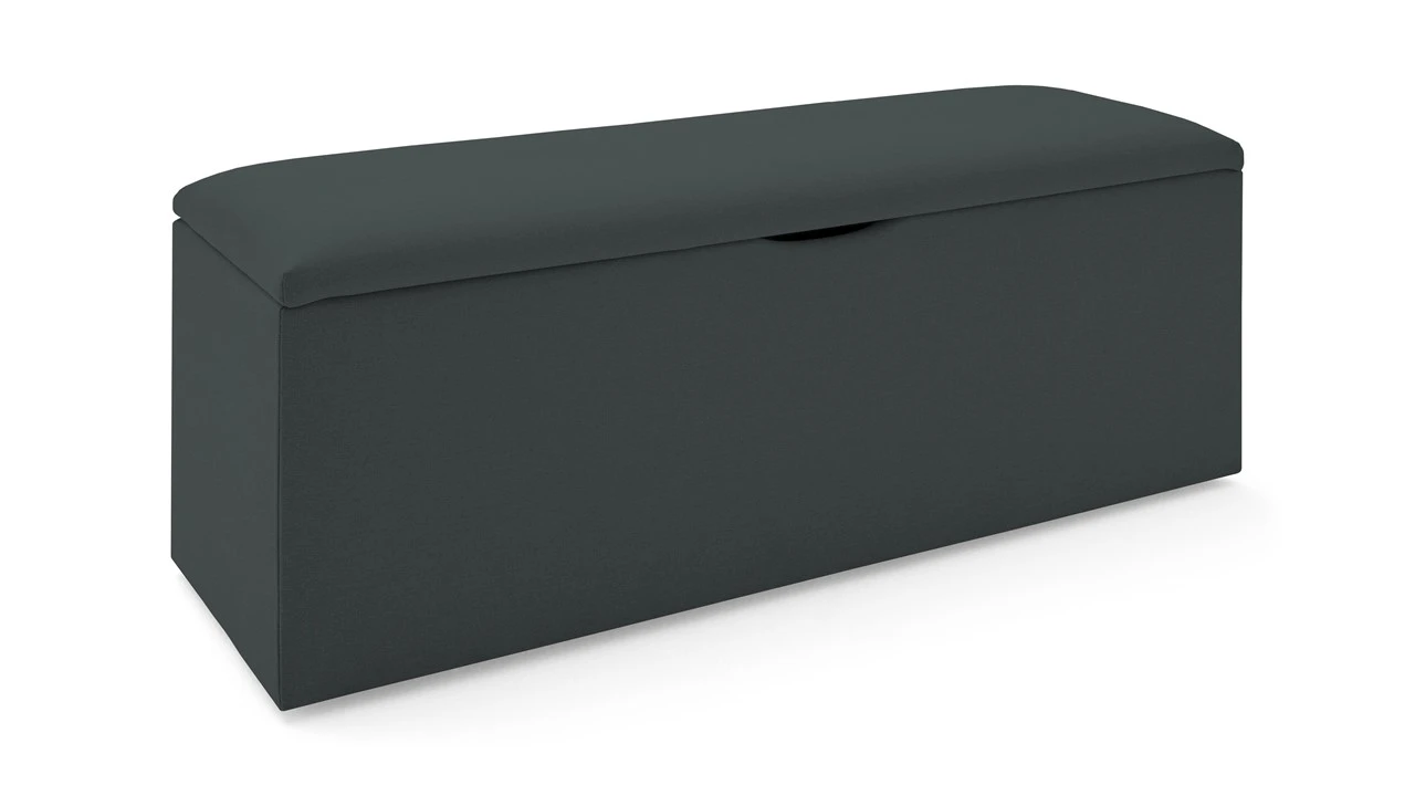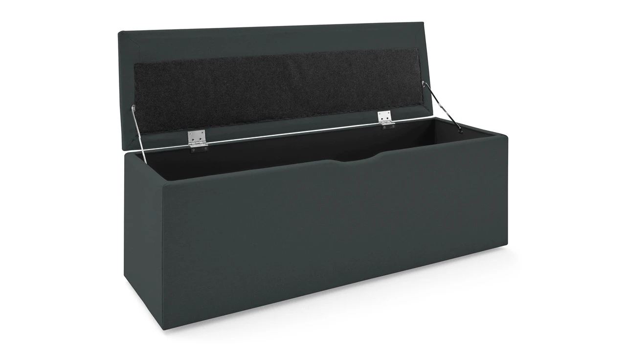 Deze specifieke uitvoering van de Karlsson collectie kenmerkt zich door een strak, egaal oppervlak zonder knopen, wat zorgt voor een moderne en rustige uitstraling. De hoogwaardige stoffen bekleding maakt het niet alleen een functioneel opbergmeubel, maar ook een comfortabel extra zitje voor bij het aankleden.