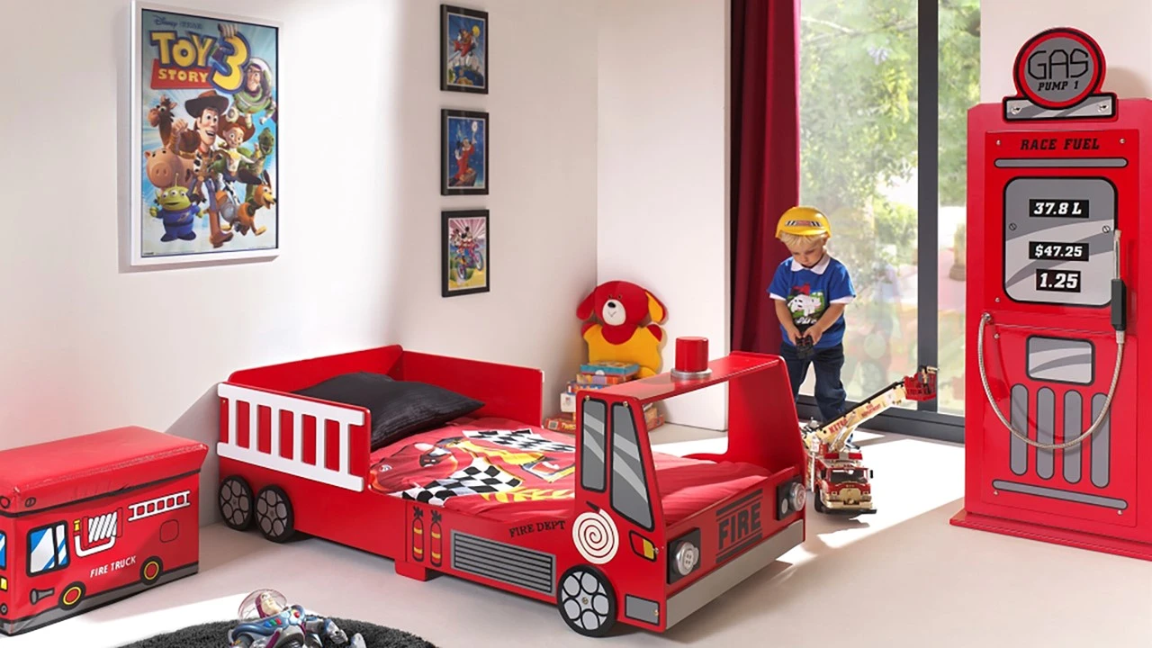 Is jouw kleintje klaar voor het volgende grote avontuur? Het Kleuterbed Fire Truck is de droom van iedere jonge brandweerman of -vrouw. Dit opvallende bed, uitgevoerd in levendig rood gelakt MDF, combineert een speels ontwerp met de veiligheid die nodig is voor de overstap uit het babyledikant.