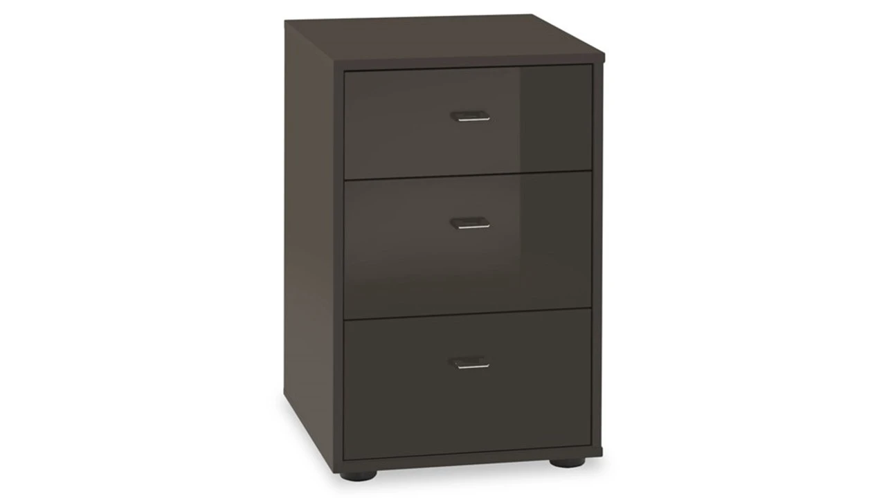 De Nachtkast Suite valt direct op door de hoogwaardige afwerking van de laden. De fronten zijn voorzien van stijlvol glas, wat zorgt voor een luxueuze en ruimtelijke uitstraling. De chromen grepen voegen een modern, glanzend accent toe dat perfect contrasteert met de strakke lijnen van de kast. Dankzij het tijdloze ontwerp past dit meubel naadloos in zowel moderne als klassieke slaapkamers.