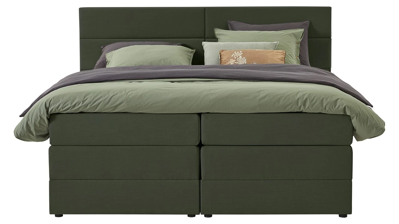 De Pearl is bekleed met de luxe ‘Cape’ stof, een gladde stoffering die rust uitstraalt. De boxspring rust op subtiele zwarte dopjes van 2 cm voor een bijna onzichtbaar effect. Binnenin vind je pocketvering in zowel de boxen als de matrassen, gecombineerd met een veerkrachtig HR koudschuim topmatras voor een stevige maar comfortabele ondersteuning en uitstekende ventilatie.