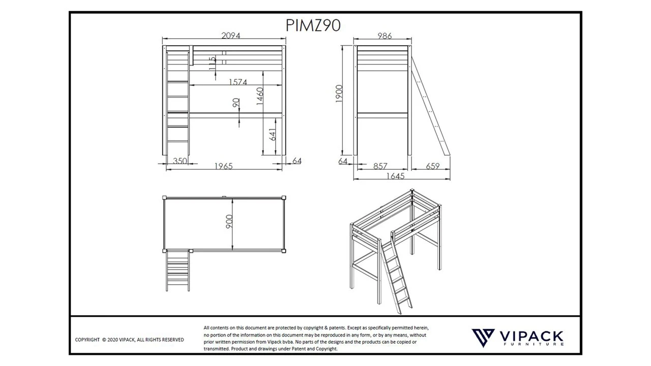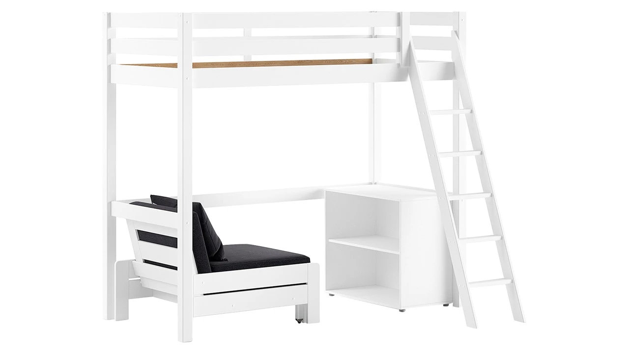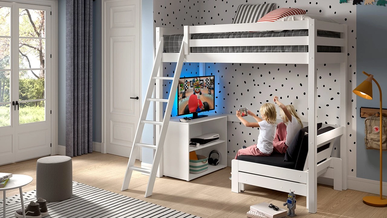 Transformeer de kinderkamer met de Pino Mezzanine hoogslaper, een meesterwerk van ruimtebesparing en modern design. Of het nu gaat om een georganiseerde studieplek of de ultieme gaming corner, dit bed biedt de perfecte basis voor een multifunctionele kamer.