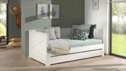 Zoek je de perfecte oplossing voor een flexibele kinderkamer? Het Pino uitschuifbare kajuitbed met paneelwand is een stijlvol en praktisch meubelstuk dat meegroeit met de behoeften van je kind. Overdag een comfortabele loungebank of een compact 1-persoonsbed, en ’s nachts in een handomdraai te transformeren naar een royaal 2-persoonsbed. Ideaal voor onverwachte logés of een gezellige filmavond.