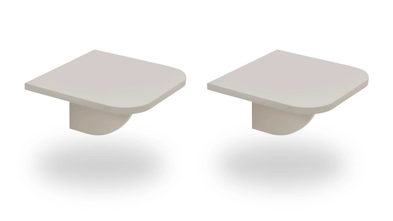 Dankzij de zwevende constructie behoudt je slaapkamer een ruimtelijk gevoel. De tafeltjes zijn ideaal voor je smartphone, een sfeervol nachtlampje of je favoriete boek. Het hoogwaardige spaanplaat met melamine afwerking zorgt voor een duurzaam en onderhoudsvriendelijk oppervlak dat jarenlang mooi blijft.