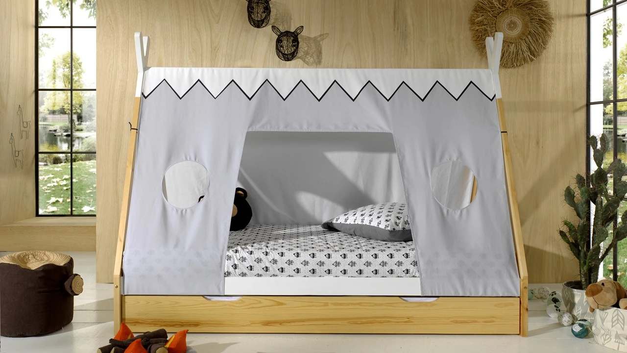 Tover het bed Tipi van je kindje om in een supergezellige wigwam met deze witte canvas bedcover. Bedtijd wordt een dagelijks avontuur in de hippe tipi-tent, waar je kleintje de mooiste verhalen beleeft, zowel tijdens het spelen als in dromenland. Met deze stijlvolle indianentent wordt de kinderkamer gegarandeerd dΓ© eyecatcher van het huis!