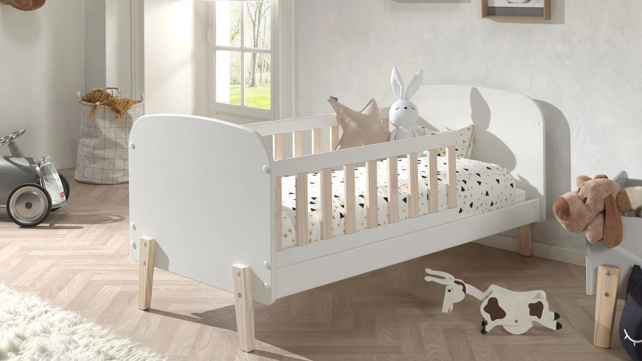 Is je kindje het babybedje ontgroeid? Het Vipack Bed Kiddy kleuter is de ideale tussenstap. Dit peuterbed combineert een speels, modern design met een rustige witte afwerking, waardoor het een tijdloze toevoeging is aan elke kinderkamer.