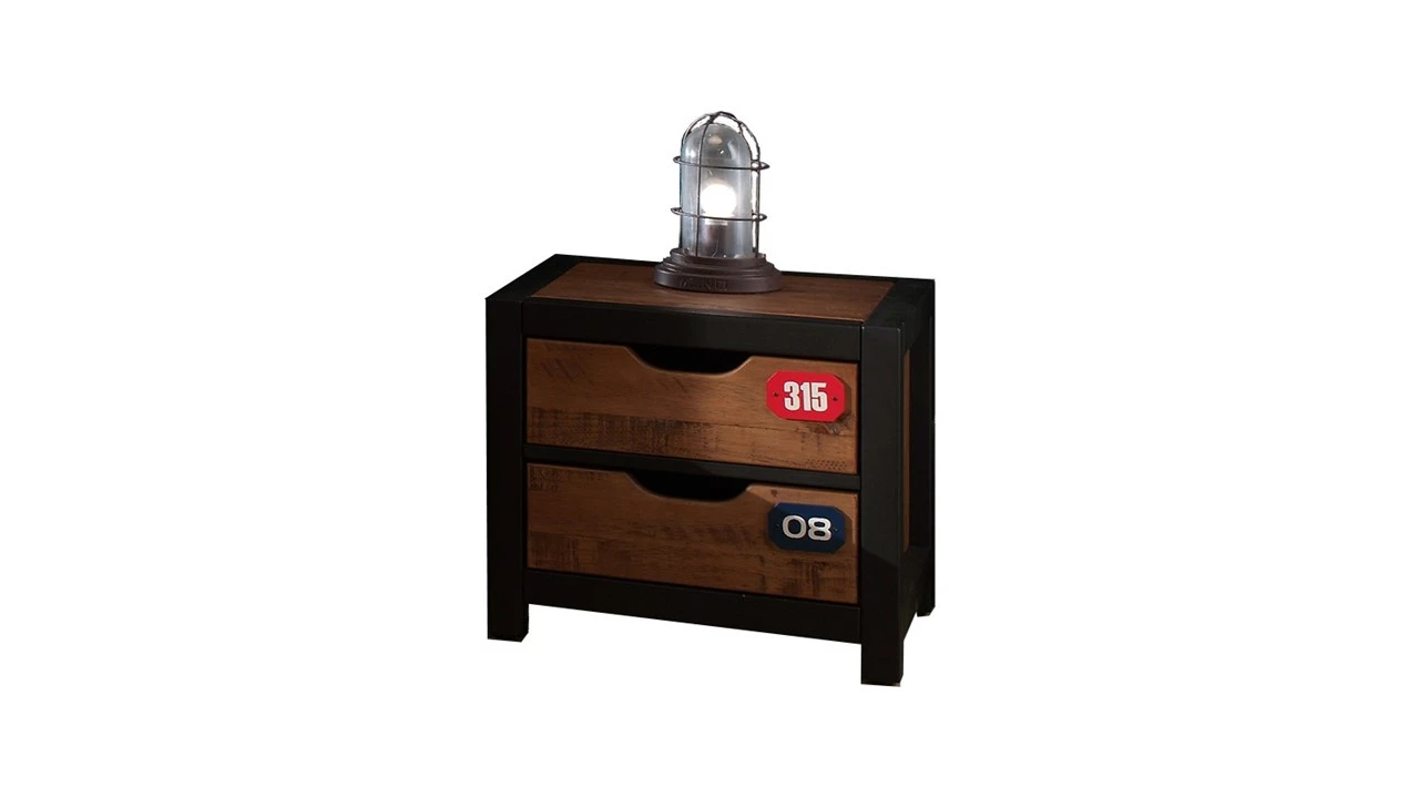Het Daan bed valt direct op door het contrast tussen de houten panelen en de zwarte ombouw. De unieke ‘cijfer’ opdruk op het voeteneind en de laden van het nachtkastje geven het geheel een stoere vintage locker-vibe. Het nachtkastje is voorzien van twee ruime laden, ideaal voor het opbergen van boeken, tijdschriften en alle favoriete spulletjes die binnen handbereik moeten blijven.