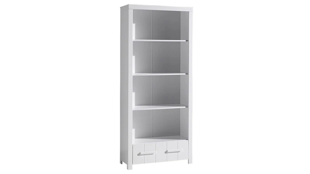 Met vier stevige legplanken en een handige lade aan de onderzijde combineert deze bibliotheekkast het beste van twee werelden: overzichtelijke open vakken en een verborgen opbergplek voor kleinere items. Het tijdloze design met verticale lijnen zorgt voor een frisse en nette look in de kinderkamer.