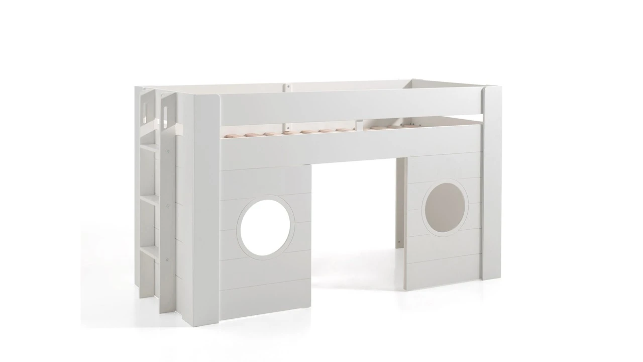 Dit bed is vervaardigd uit een duurzame combinatie van wit gelakt grenenhout en MDF, wat zorgt voor een stevige en tijdloze uitstraling. De opstaande rand fungeert als betrouwbare uitvalbeveiliging, zodat zowel jij als je kind met een gerust hart kunnen slapen. De flexibiliteit is een groot pluspunt: de ladder kan naar wens aan zowel de linker- als de rechterkant worden gemonteerd.