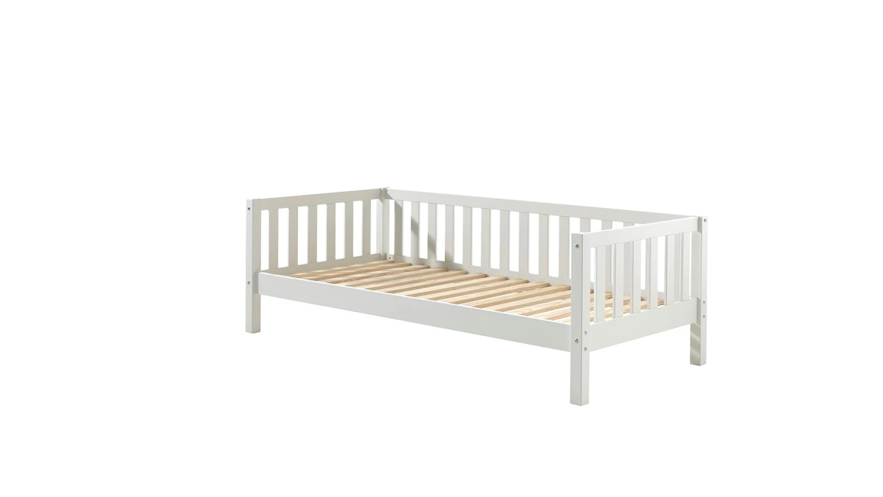 Het Vipack Kajuitbed Fritz is een veelzijdig pronkstuk voor de kinderkamer. Dankzij het slimme ontwerp functioneert dit meubel ’s nachts als een comfortabel bed en overdag als een hippe bedbank. Door kussens tegen de drie houten hekjes te plaatsen, creëer je in een handomdraai een gezellige plek om te lezen of te ontspannen. Dit minimalistische bed is vervaardigd uit hoogwaardig FSC-gecertificeerd grenenhout en afgewerkt met een veilige, milieuvriendelijke lak.
