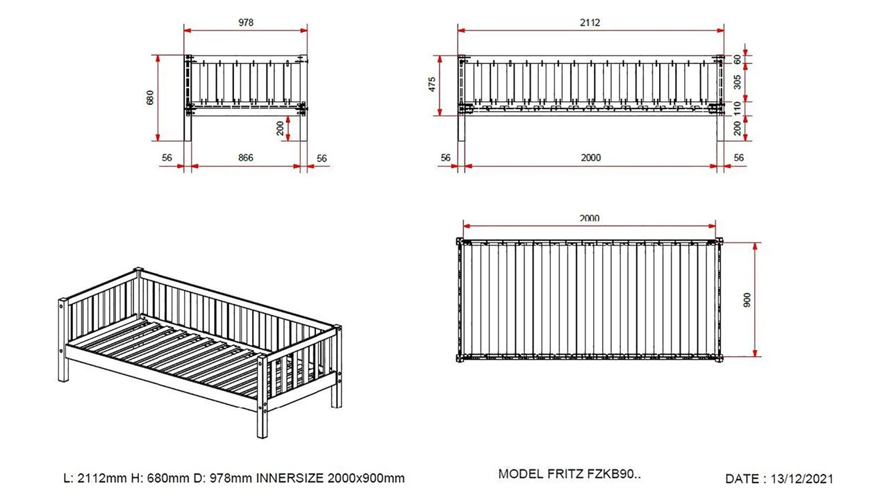 - Afmetingen: Geschikt voor matrasmaat 90 x 200 cm