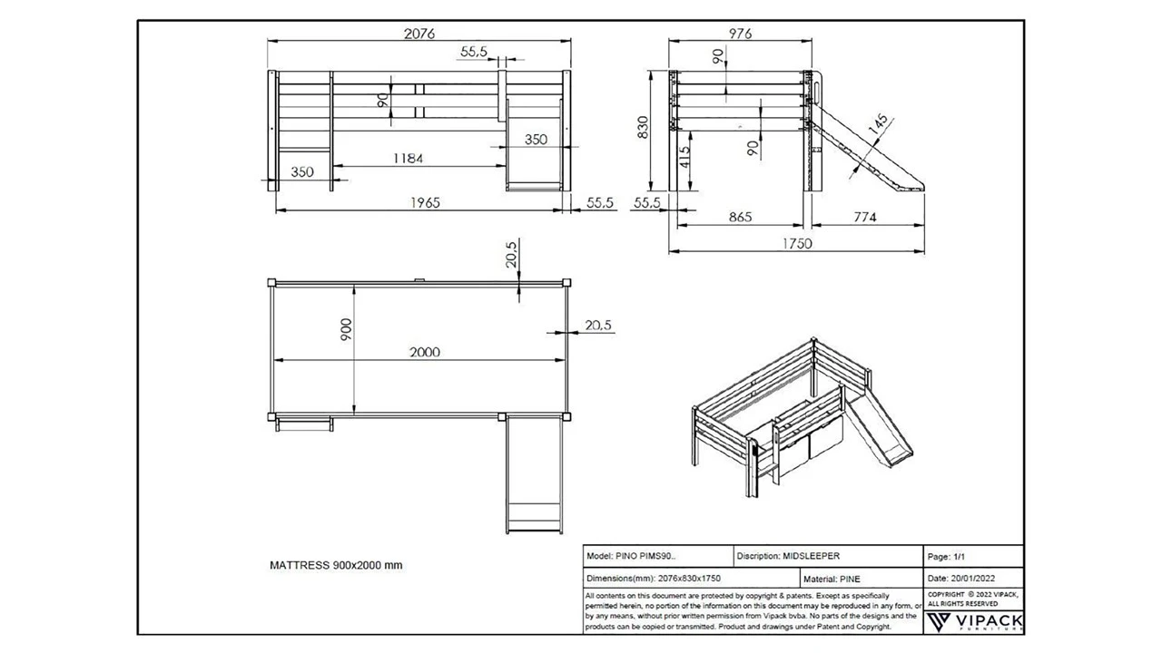 - Eenvoudige Montage: Dankzij de duidelijke handleiding van Vipack staat het bed in een handomdraai.